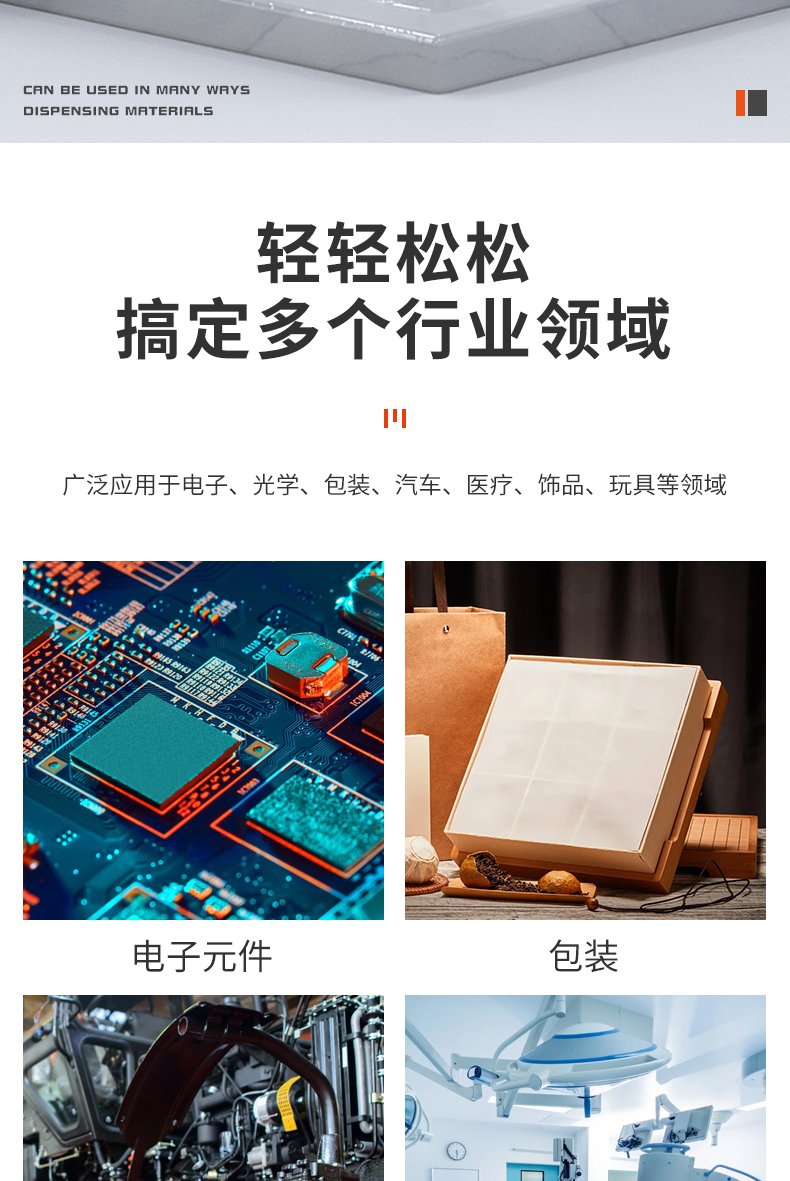 ☆粘接、封裝、涂層、密封、充填、點形涂布、線形涂布等。
