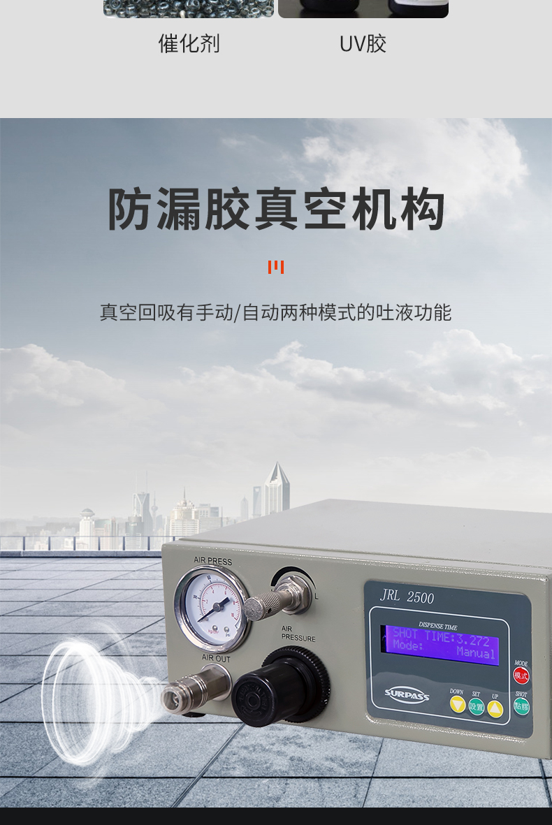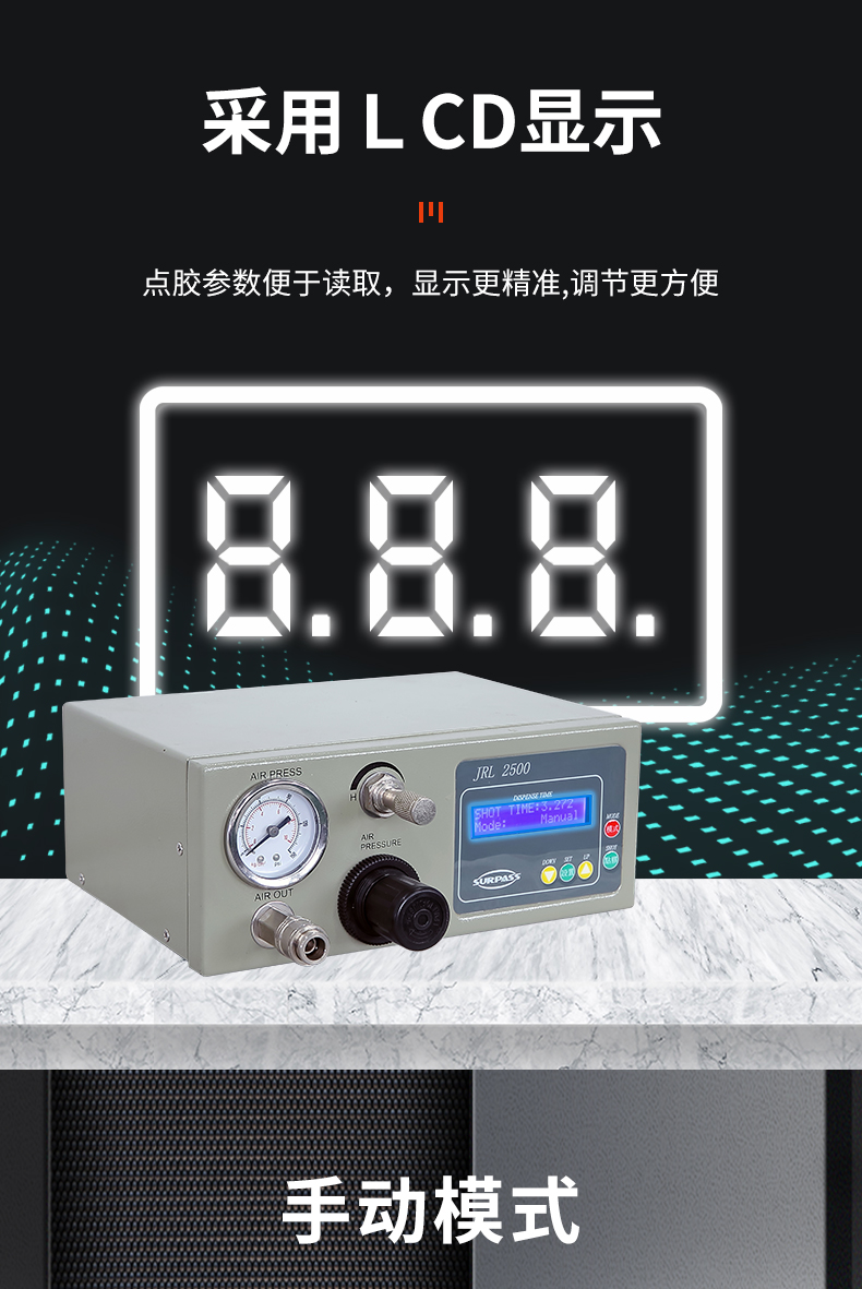 ●設有手動模式,可以設定點膠時間和間隔時間,使機器涂膠工作變得更精確、方便。