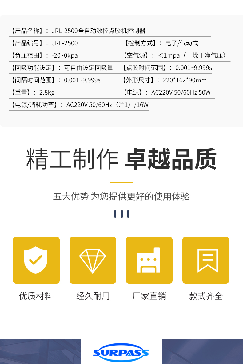 主頁  > 產品展示  > 自動點膠機  > 點膠機配件  > JRL-2500全自動數控點膠機控制器